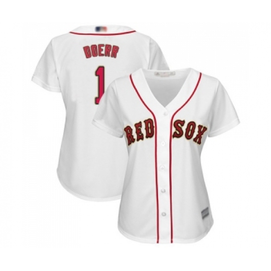 Women's Boston Red Sox #1 Bobby Doerr Authentic White 2019 Gold Program Cool Base Baseball Jersey