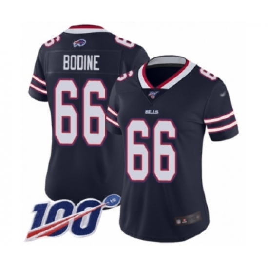 >Women's Buffalo Bills #66 Russell Bodine Limited Navy Blue Inverted Legend 100th Season Football Jersey