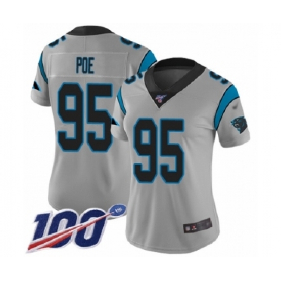 Women's Carolina Panthers #95 Dontari Poe Silver Inverted Legend Limited 100th Season Football Jersey