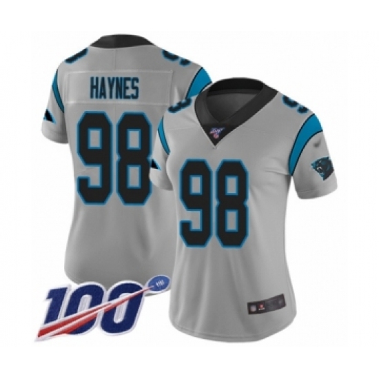 >Women's Carolina Panthers #98 Marquis Haynes Silver Inverted Legend Limited 100th Season Football Jersey