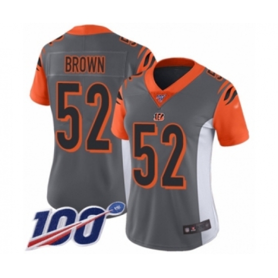 >Women's Cincinnati Bengals #52 Preston Brown Limited Silver Inverted Legend 100th Season Football Jersey