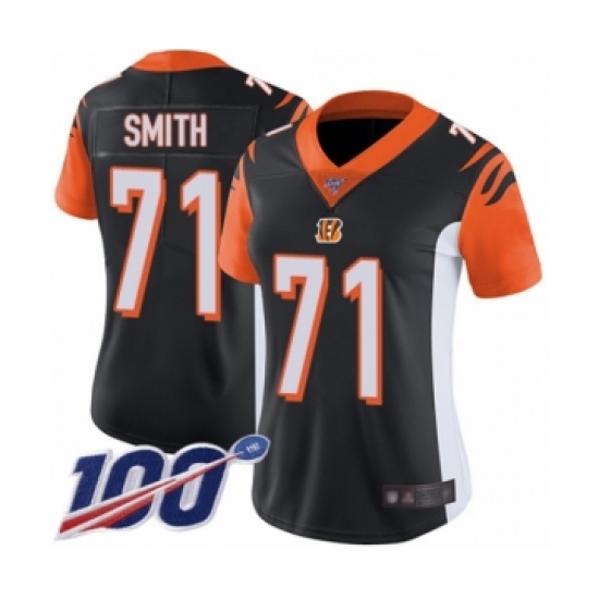 >Women's Cincinnati Bengals #71 Andre Smith Black Team Color Vapor Untouchable Limited Player 100th Season Football Jersey