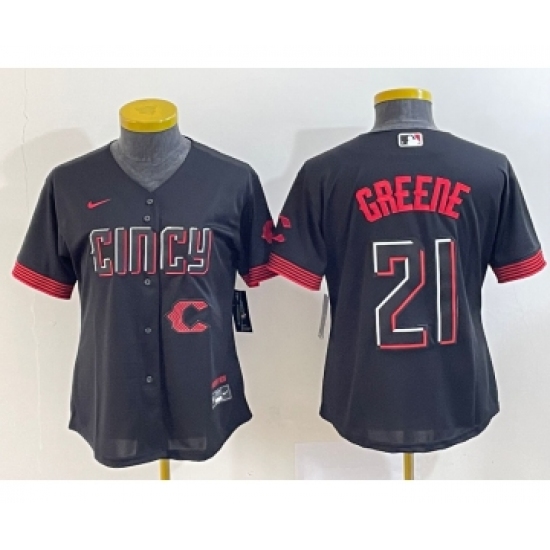 Women's Cincinnati Reds #21 Hunter Greene Black 2023 City Connect Cool Base Stitched Jersey1