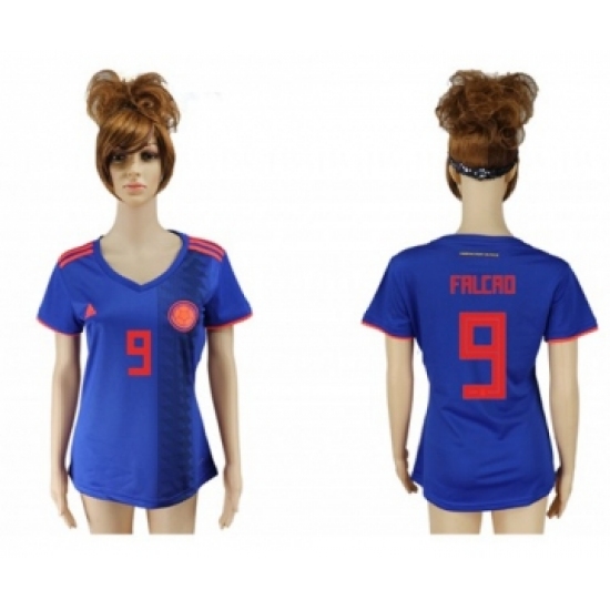 >Women's Colombia #9 Falcao Away Soccer Country Jerseyy