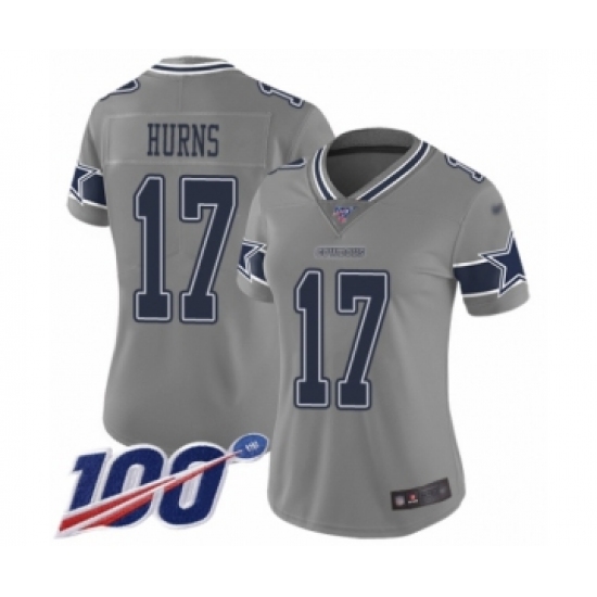 >Women's Dallas Cowboys #17 Allen Hurns Limited Gray Inverted Legend 100th Season Football Jersey