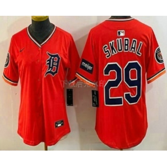 >Women's Detroit Tigers #29 Tarik Skubal Orange Stadium Jersey