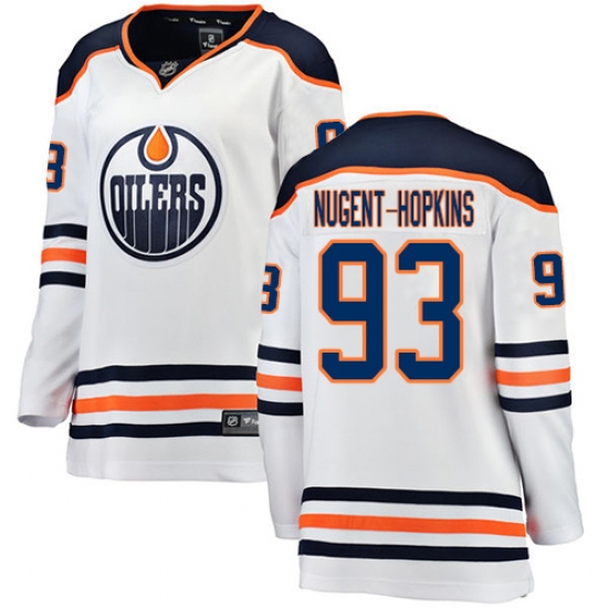 Home>NHL>Edmonton Oilers>Ryan Nugent-Hopkins>Women's Edmonton Oilers #93 Ryan Nugent-Hopkins Authentic White Away Fanatics Branded Breakaway NHL Jersey