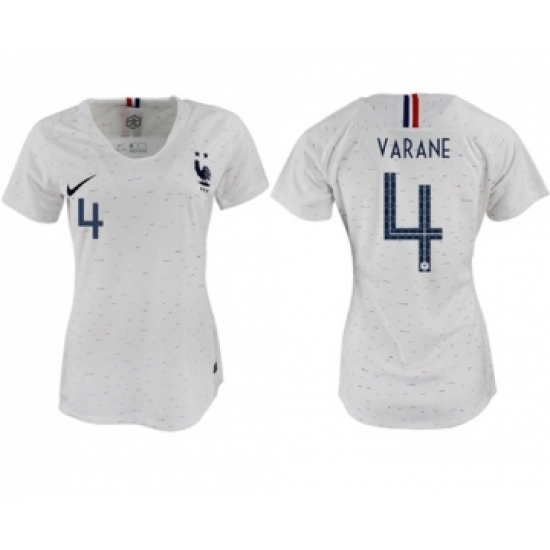 Women's France #4 Varane Away Soccer Country Jersey