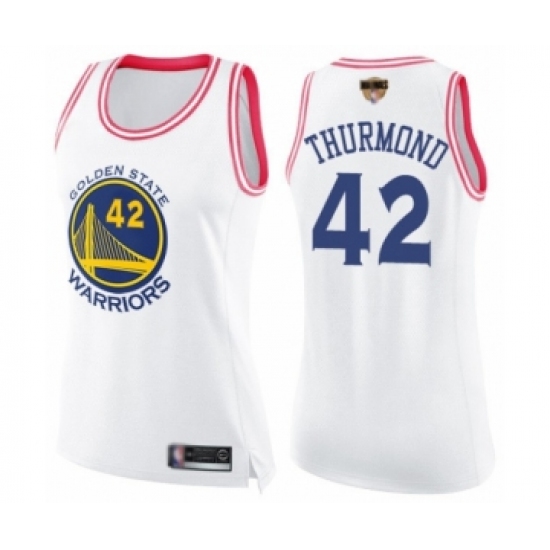 Women's Golden State Warriors #42 Nate Thurmond Swingman White Pink Fashion 2019 Basketball Finals Bound Basketball Jersey