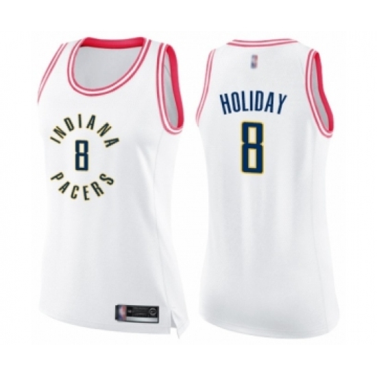 >Women's Indiana Pacers #8 Justin Holiday Swingman White Pink Fashion Basketball Jersey