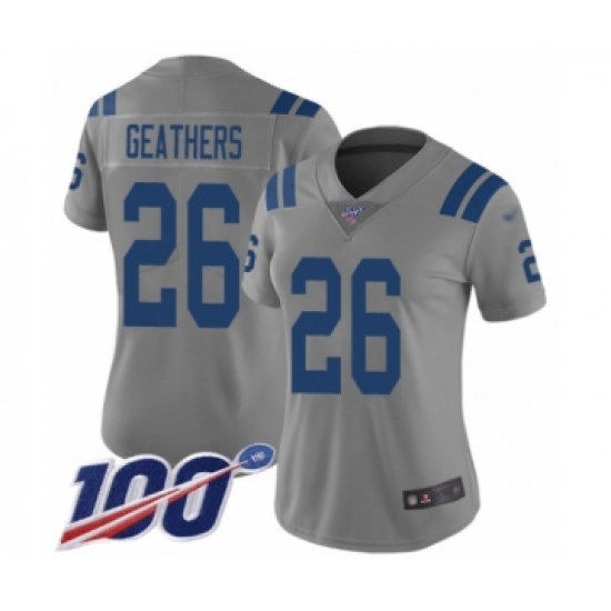 >Women's Indianapolis Colts #26 Clayton Geathers Limited Gray Inverted Legend 100th Season Football Jersey