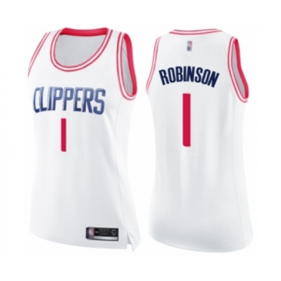 Women's Los Angeles Clippers #1 Jerome Robinson Swingman White Pink Fashion Basketball Jersey