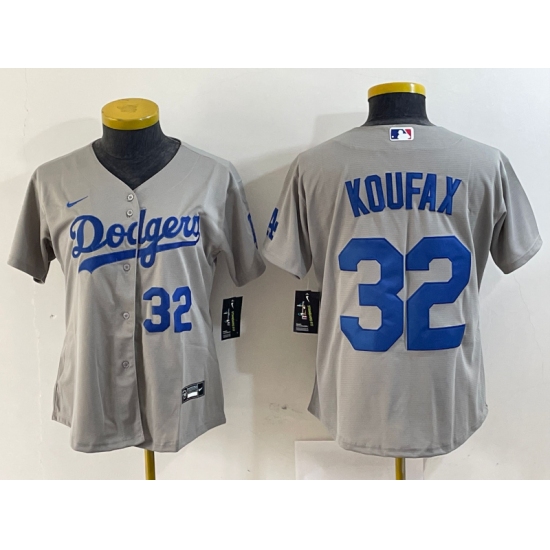 Women's Los Angeles Dodgers #32 Sandy Koufax Grey Cool Base Stitched Jersey