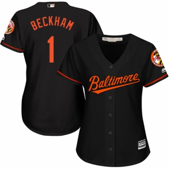 >Women's Majestic Baltimore Orioles #1 Tim Beckham Authentic Black Alternate Cool Base MLB Jersey