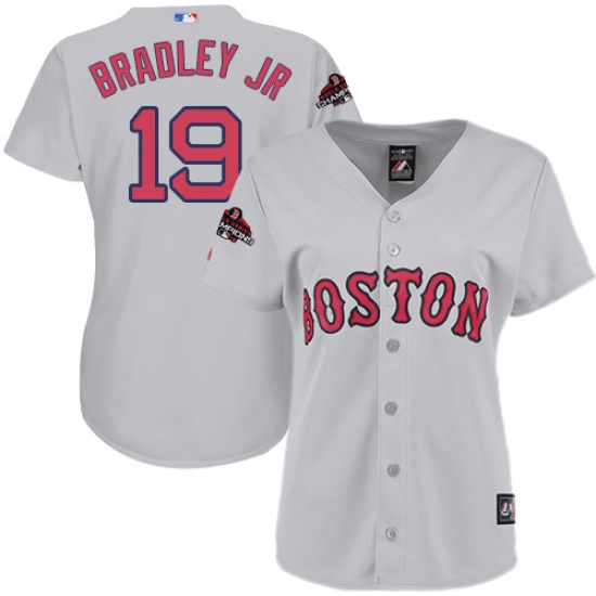 Women's Majestic Boston Red Sox #19 Jackie Bradley Jr Authentic Grey Road 2018 World Series Champions MLB Jersey