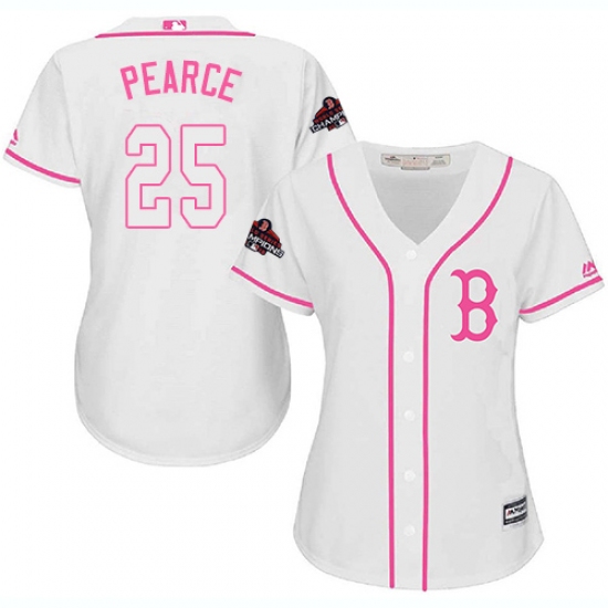 Women's Majestic Boston Red Sox #25 Steve Pearce Authentic White Fashion 2018 World Series Champions MLB Jersey