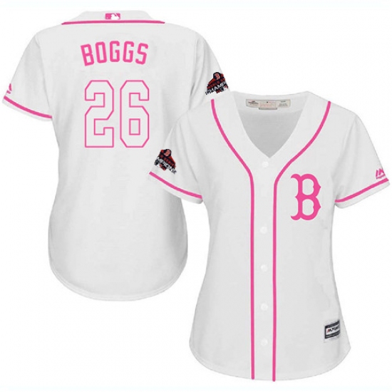 Women's Majestic Boston Red Sox #26 Wade Boggs Authentic White Fashion 2018 World Series Champions MLB Jersey