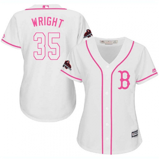 Women's Majestic Boston Red Sox #35 Steven Wright Authentic White Fashion 2018 World Series Champions MLB Jersey
