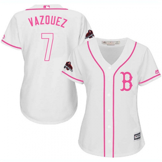 Women's Majestic Boston Red Sox #7 Christian Vazquez Authentic Pink Fashion 2018 World Series Champions MLB Jersey