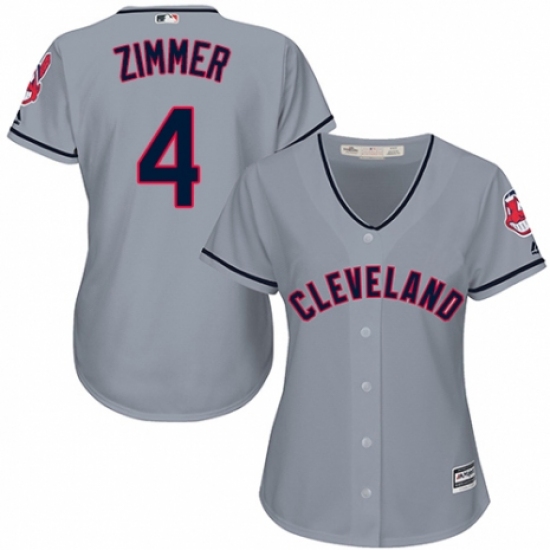 Women's Majestic Cleveland Indians #4 Bradley Zimmer Replica Grey Road Cool Base MLB Jersey
