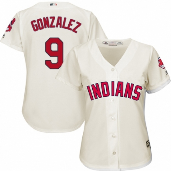 Women's Majestic Cleveland Indians #9 Erik Gonzalez Replica Cream Alternate 2 Cool Base MLB Jersey
