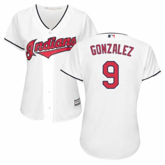 >Women's Majestic Cleveland Indians #9 Erik Gonzalez Replica White Home Cool Base MLB Jersey