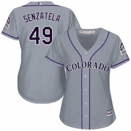 Women's Majestic Colorado Rockies #49 Antonio Senzatela Replica Grey Road Cool Base MLB Jersey