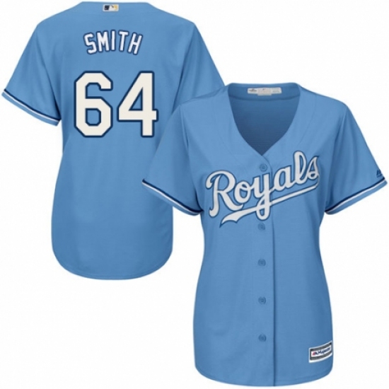 Women's Majestic Kansas City Royals #64 Burch Smith Replica Light Blue Alternate 1 Cool Base MLB Jersey