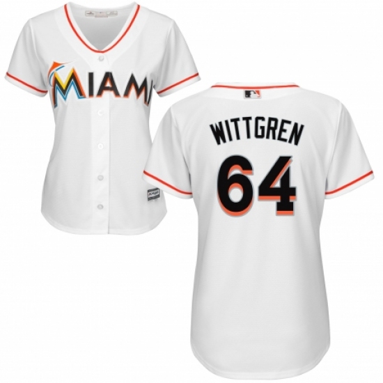 >Women's Majestic Miami Marlins #64 Nick Wittgren Replica White Home Cool Base MLB Jersey