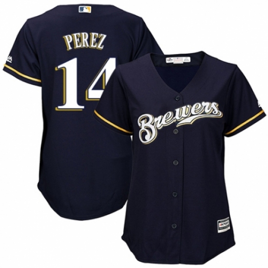 Men's Majestic Milwaukee Brewers #14 Hernan Perez Navy Blue Alternate Flex Base Authentic Collection MLB Jersey