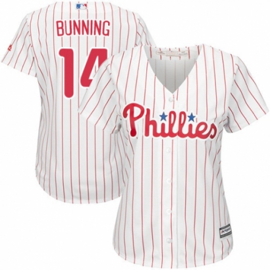 >Women's Majestic Philadelphia Phillies #14 Jim Bunning Authentic White/Red Strip Home Cool Base MLB Jersey
