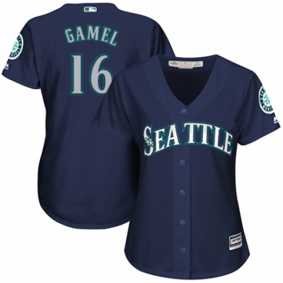 >Women's Majestic Seattle Mariners #16 Ben Gamel Authentic Navy Blue Alternate 2 Cool Base MLB Jersey