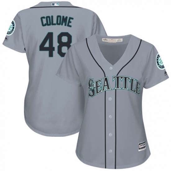 >Women's Majestic Seattle Mariners #48 Alex Colome Authentic Grey Road Cool Base MLB Jersey