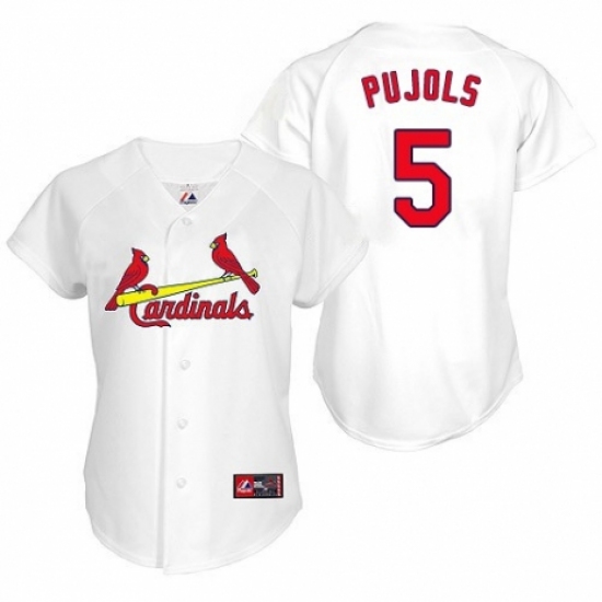 >Women's Majestic St. Louis Cardinals #5 Albert Pujols Replica White MLB Jersey