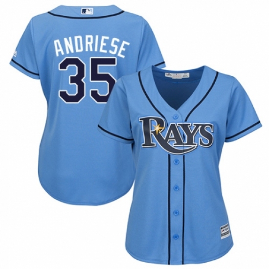 >Women's Majestic Tampa Bay Rays #35 Matt Andriese Authentic Light Blue Alternate 2 Cool Base MLB Jersey