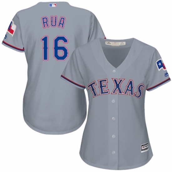 >Women's Majestic Texas Rangers #16 Ryan Rua Replica Grey Road Cool Base MLB Jersey