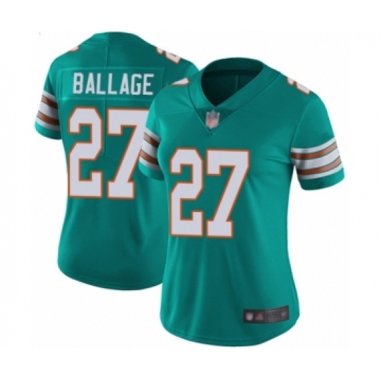 >Women's Miami Dolphins #27 Kalen Ballage Aqua Green Alternate Vapor Untouchable Limited Player Football Jersey