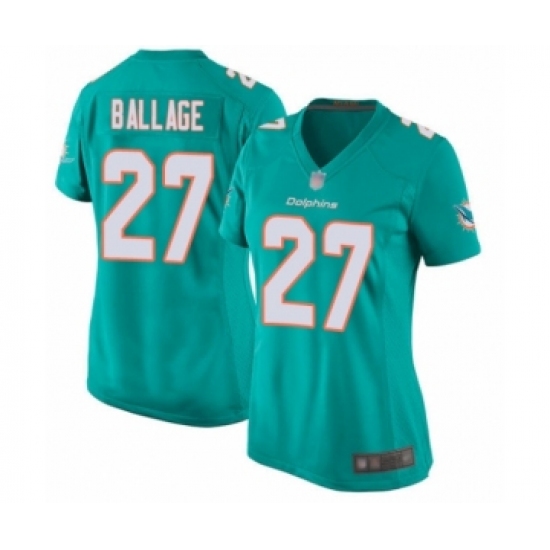 >Women's Miami Dolphins #27 Kalen Ballage Game Aqua Green Team Color Football Jersey