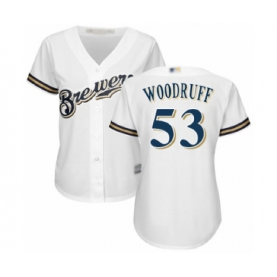 Women's Milwaukee Brewers #53 Brandon Woodruff Authentic White Home Cool Base Baseball Jersey