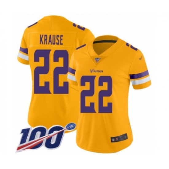 Women's Minnesota Vikings #22 Paul Krause Limited Gold Inverted Legend 100th Season Football Jersey