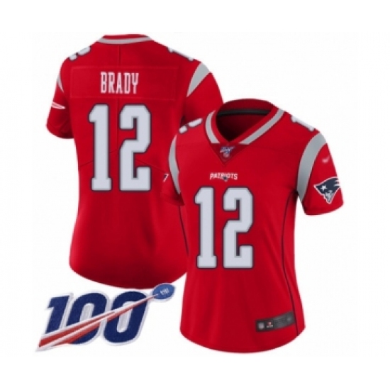 Women's New England Patriots #12 Tom Brady Limited Red Inverted Legend 100th Season Football Jersey