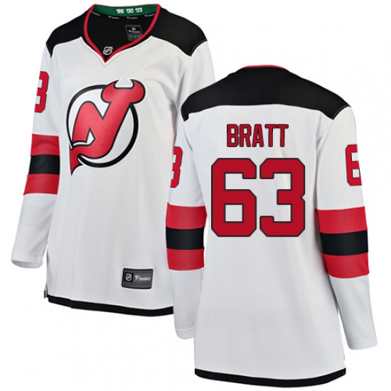 Home>NHL>New Devils Jersey>Jesper Bratt>Women's New Jersey Devils #63 Jesper Bratt Fanatics Branded White Away Breakaway NHL Jersey