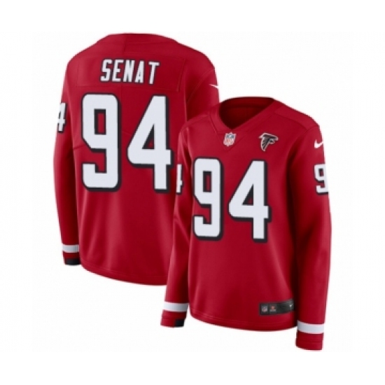 >Women's Nike Atlanta Falcons #94 Deadrin Senat Limited Red Therma Long Sleeve NFL Jersey