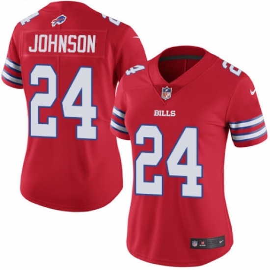 >Women's Nike Buffalo Bills #24 Taron Johnson Limited Red Rush Vapor Untouchable NFL Jersey