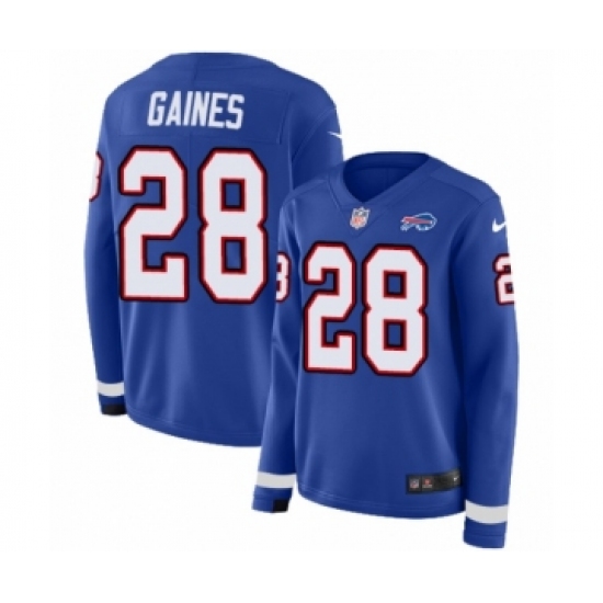 >Women's Nike Buffalo Bills #28 Phillip Gaines Limited Royal Blue Therma Long Sleeve NFL Jersey