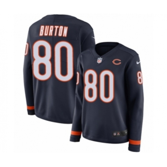 Women's Nike Chicago Bears #80 Trey Burton Limited Navy Blue Therma Long Sleeve NFL Jersey