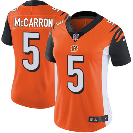 Home>NFL>Cincinnati Bengals>AJ McCarron>Women's Nike Cincinnati Bengals #5 AJ McCarron Vapor Untouchable Limited Orange Alternate NFL Jersey