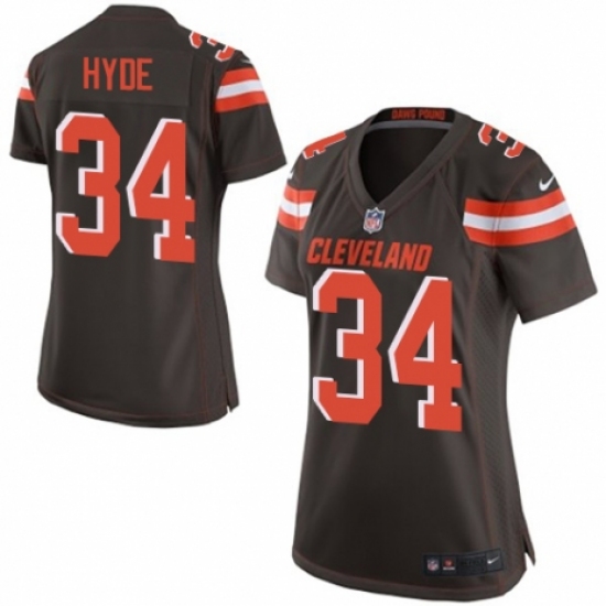 Women's Nike Cleveland Browns #34 Carlos Hyde Game Brown Team Color NFL Jersey