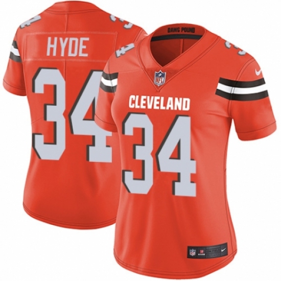 Women's Nike Cleveland Browns #34 Carlos Hyde Orange Alternate Vapor Untouchable Limited Player NFL Jersey