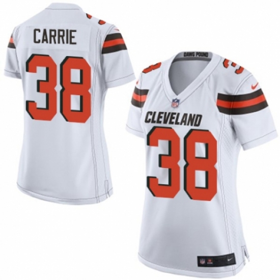 Women's Nike Cleveland Browns #38 T. J. Carrie Game White NFL Jersey
